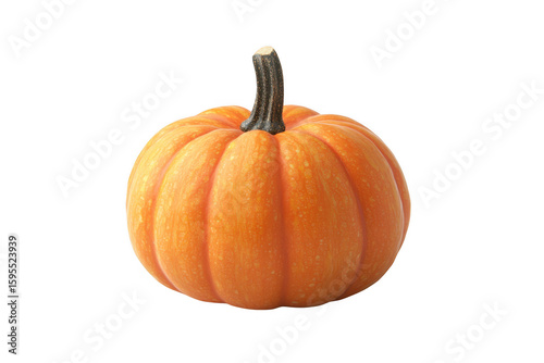 A single ripe orange pumpkin with a dark stem isolated on transparent background