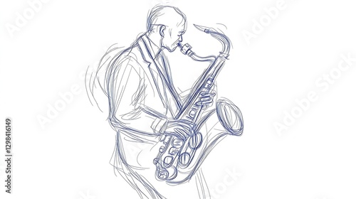 A sketch of a musician playing the saxophone with passion and energy.