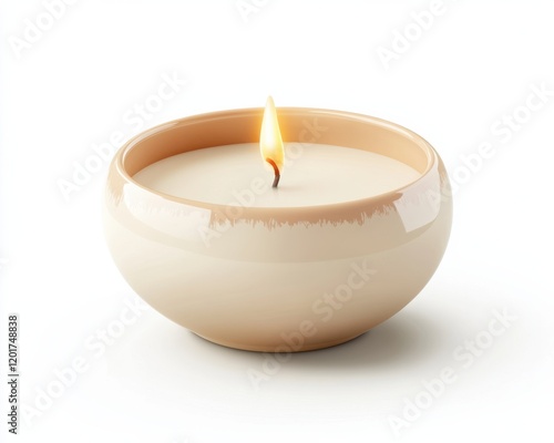 A soothing candle burns softly in a minimalist bowl, creating a calming atmosphere.