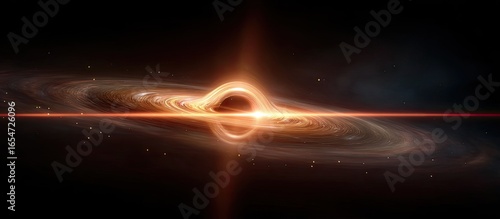 A swirling black hole, surrounded by glowing cosmic dust and distant stars