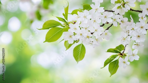 A tree branch full of cherry blossom leaves swaying gracefully in spring wind