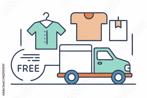 A vector illustration set features various delivery trucks and other transportation vehicles, from a simple cartoon van to a detailed road cargo design