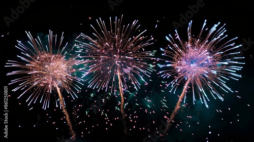 A vibrant display of fireworks against a dark, black background, illuminating the night sky with colorful bursts of light and sparkles