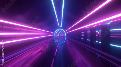 A vibrant, futuristic tunnel illuminated by neon lights, creating a dynamic and immersive atmosphere.