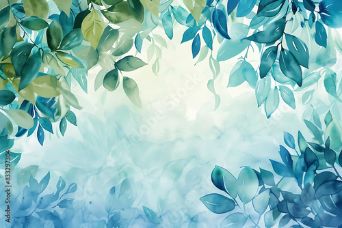 A vibrant watercolor ecology background featuring lush greenery and blue hues, evoking a sense of nature's beauty.