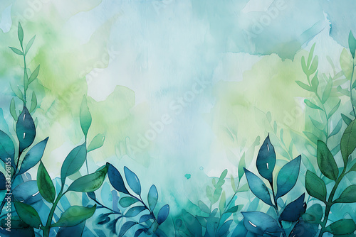 A vibrant watercolor ecology background featuring lush greenery and blue hues, evoking a sense of nature's beauty.
