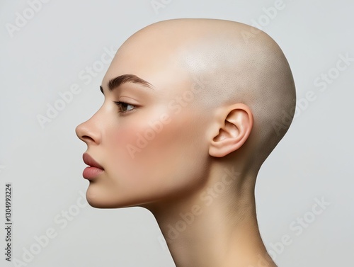 A woman with a bald head and a shaved head