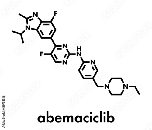 Abemaciclib cancer drug molecule (CDK inhibitor). Skeletal formula.