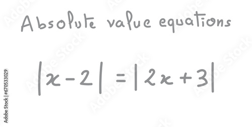 Absolute value equations of real number. Mathematics resources for teachers and students. Scientific doodle handwriting concept.