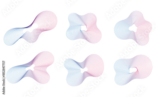 Abstract 3D Fluid Gradient Shapes Collection: Pink and Blue Twisted Loops Vector Illustration