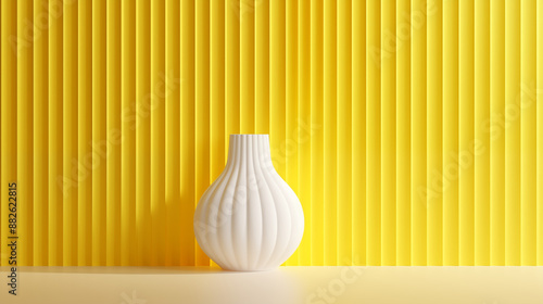 abstract 3d interior scene white vase with yellow background color and line texture and sunlight.