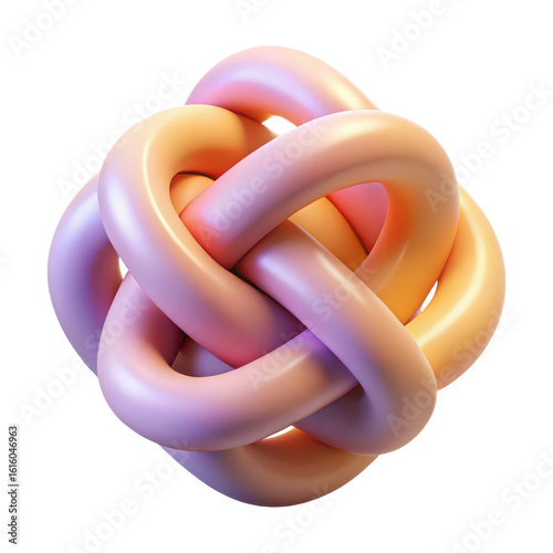 Abstract 3d rendered interlocking tubular knot with soft gradient colors isolated on transparent background