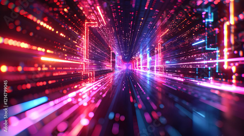 Abstract Background with Neon Light Trails and Bokeh Effect Creates Dynamic Visual