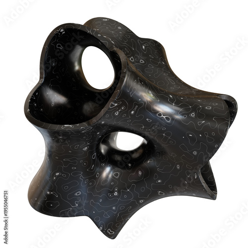 Abstract black geometric shape isolated on a transparent background. 3D rendering, ideal for luxury branding, product visuals, and premium marketing.