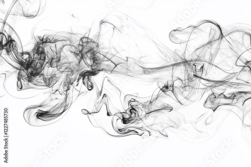 Abstract black smoke swirls gracefully across a white background, creating a sense of movement and fluidity