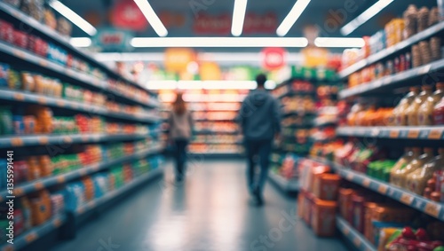 abstract blurred supermarket backdrop. sale, shopping, consumerism - concept