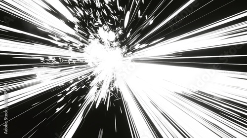 Abstract high-contrast explosion of white lines radiating from a central point.