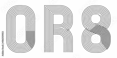Abstract linear illustration of the letters o r and 8 in grayscale