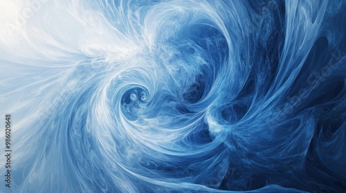 Abstract swirling blue patterns resembling fluid movement and ethereal forms.