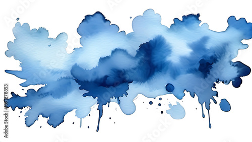 Abstract watercolor blue sky paint isolated on white background. Hand-painted watercolor splatter stains artistic used as an element in the decorative design.