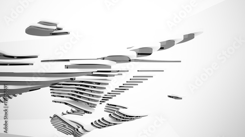 Abstract white and black parametric interior with window. 3D illustration and rendering.
