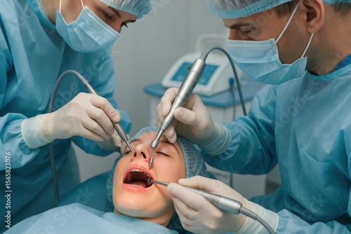 Advanced dental implant surgery with precise surgical instruments and modern oral healthcare technology