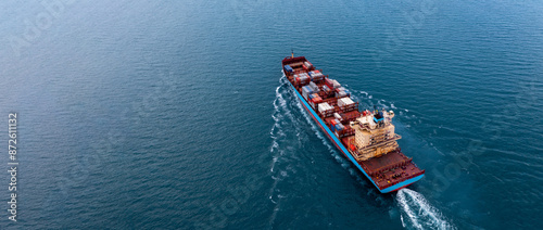 Aerial view container cargo ship sea freight shipping, Global business industry import export logistic transportation international by container cargo ship, Container ship commercial freight shipping.