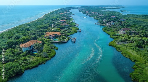 Aerial View of Cedar Key, Florida Highlighting Coastal Landscape and Serene Waterscape Features