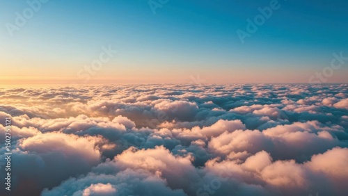 Aerial view of fluffy clouds at sunrise or sunset