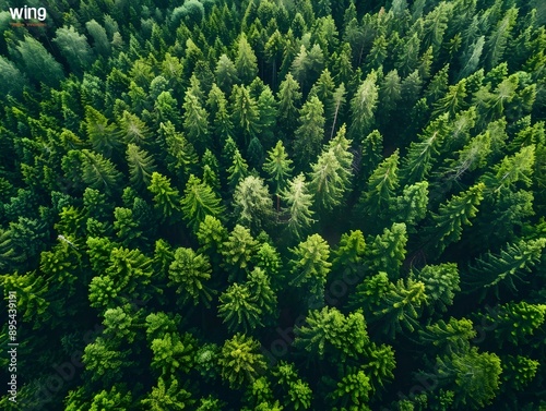 Aerial View of Lush Green Forested Landscape with Towering Evergreen Trees