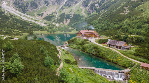 Aerial view of the lake Zelene pleso in the High Tatras in Slovakia