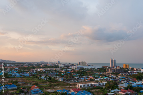 Aerial view scenic landscape of the city with storm cloud rain will coming