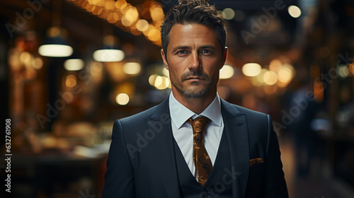 AI generated businessman with a nice suit, orange accents