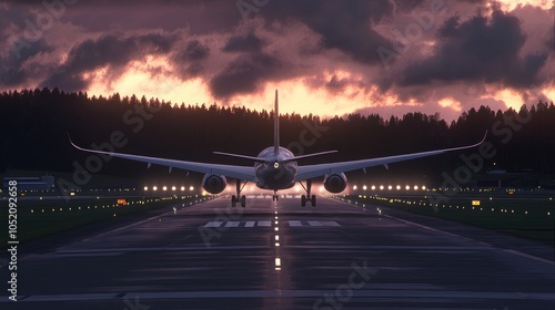 Airplane Taking Off at Sunset with Dramatic Clouds