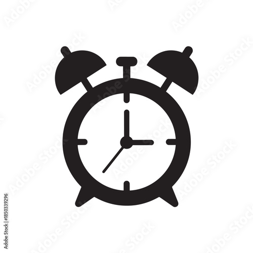 Alarm Clock Silhouette in Simple Design with Black Color on White Background for Time Management