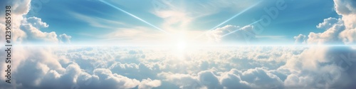 Almighty God in Heaven: the biblical concept brought to life. A glimpse of the divine amidst the clouds and a ray of sunshine