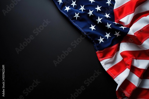 American flag emblem isolated on dark background with web banner design and copy space. Symbolic patriotism display for digital marketing and advertising.