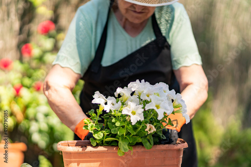 An 80 year old woman preparing her garden.