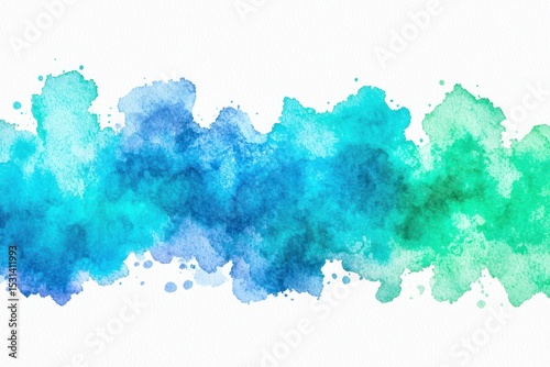 An abstract watercolor painting in shades of blue and green, forming a horizontal band against a white background. The colors blend seamlessly, creating a soft, ethereal effect