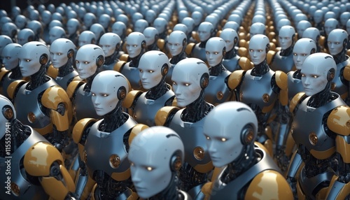 An assembly line of humanoid robots