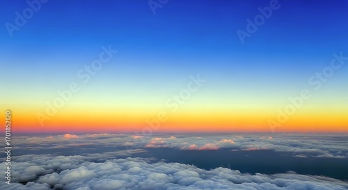 An Expansive Aerial View Of Layers Of Fluffy Clouds Stretching Towards A Gradient Horizon At Sunset Or Sunrise, Featuring Vibrant Hues Of Blue, Yellow, And Orange.