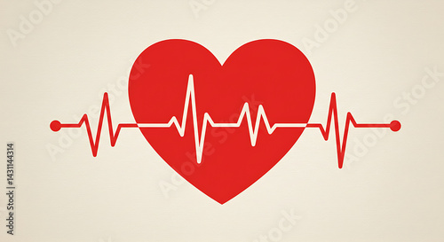 An illustration of a heart with a red heartbeat line This simple design symbolizes health and vitality, perfect for medical and wellness-themed projects