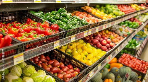 An image of a grocery store aisle filled with various types of fresh food