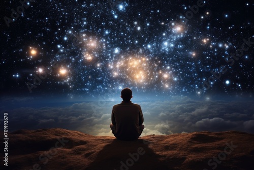 An man thinking about the vastness of the universe.