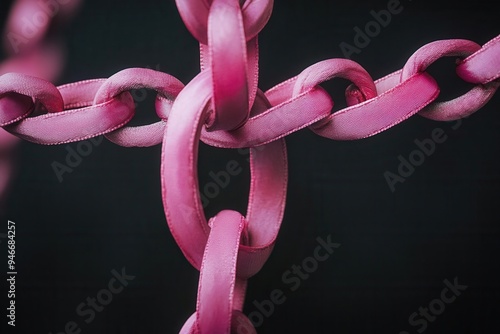 An unbreakable chain made of pink ribbons, symbolizing enduring strength, Cancer Awareness Strength, Enduring Force
