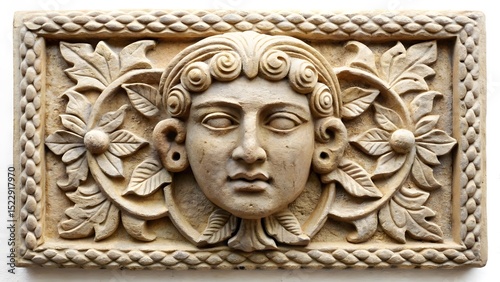 Ancient Stone Carving of a Woman s Face with Floral Motif