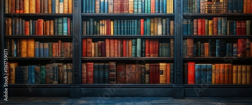 Antique Bookshelf Filled with Vintage Books and Leather-Bound Volumes
