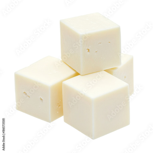 Appetizing cubes of edam cheese, a classic and versatile dairy product, isolated on white background for food blogs and packaging