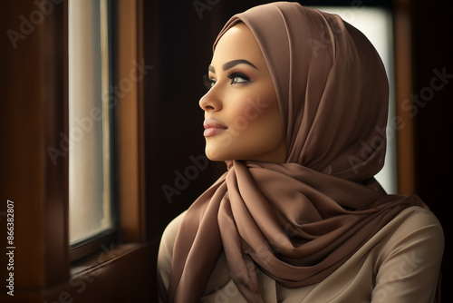 Arabian woman in hijab living her life in modern city have shopping working traveling abilities, Generative AI