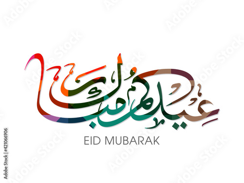 Arabic Calligraphic text of Eid Kum Mubarak for the Muslim community festival celebration.